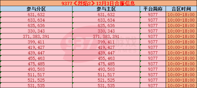 您好!感谢大家一直以来对9377《烈焰》的支持!为了给大家提供更加优质的游戏环境,感受更多的游戏乐趣,提高游戏的可玩性和互动性,应广大玩家的需求,我们将对部分进行分组数据互通合服操作。届时玩家可以通过原有账号登陆数据互通后的服务器。